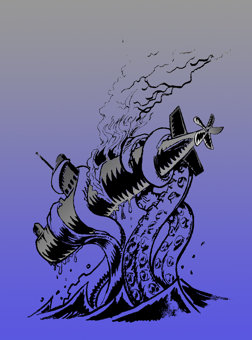I took the image from a flyer of the squat “Moulin Mer” (but they also pick it up somewhere…) The draw being weird, it suggested me something about the Atomic Ocean…